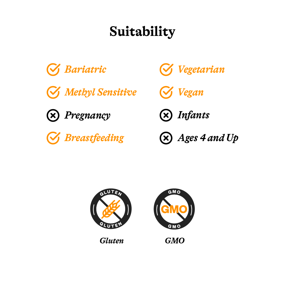 Bariatric, methyl sensitive, breastfeeding, vegetarian, vegan, adults,